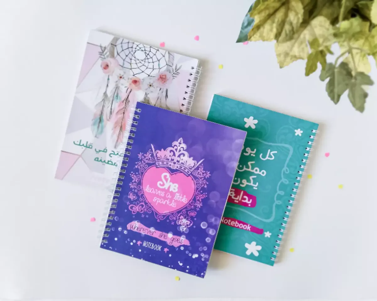 Notebook Size : A5, 21*15 cm Ruled, 60 pages Cover Material: 300gsm Cushion with Wire Available in many designs